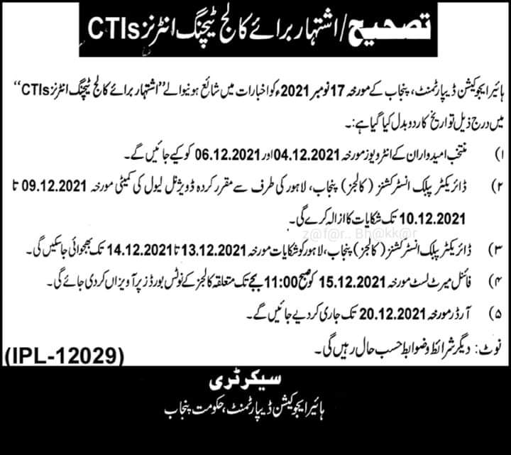 Dec 01, 2021 HED Punjab has revised schedule for hiring of CTIs for public sector colleges in Punjab. Revised schedule/ dates are mentioned in the below link. Please click here to download the advertisement
