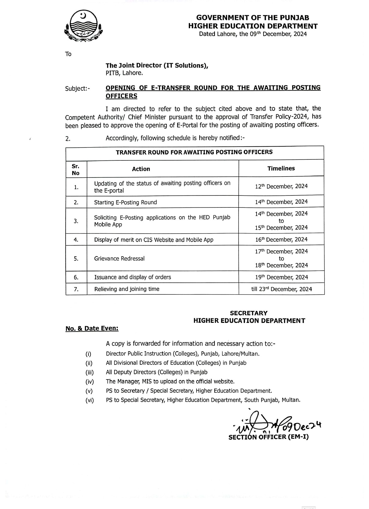 OPENING THE E-TRANSFER ROUND FOR THE AWAITING POSTING OFFICERS