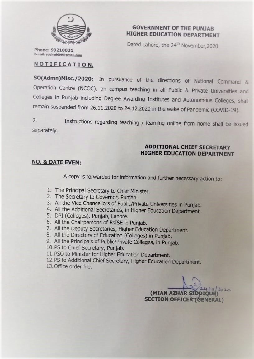 Notification for Suspension of Campus Teaching in HED Institutes due to COVID-19